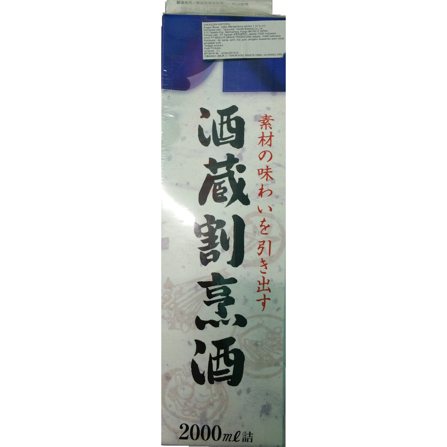 Volume : 2000 ML Kadar Alkohol : 14 % Berat : 3 Kg Stok : Stok Kosong Vintage : - Country : Japanese Sake Point Reward : 10 Point Reward yang Anda dapatkan dapat ditukarkan dengan kupon belanja!